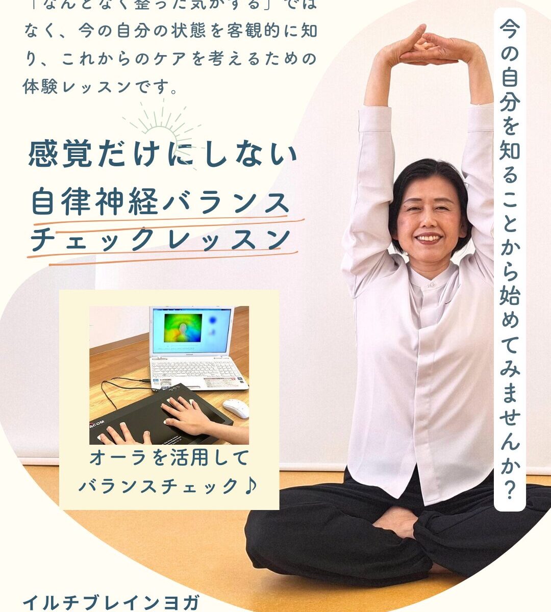 オーラ撮影を活用し、レッスン前後で自律神経のバランスの変化をチェックします。